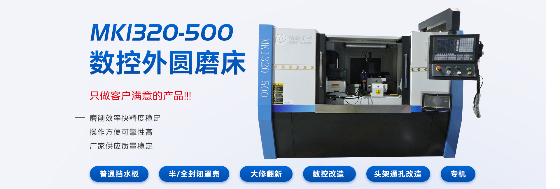 無錫市精淼機械科技有限公司是一家專業(yè)生產(chǎn)外圓磨床,無心磨床,內(nèi)圓磨床的整合型磨床生產(chǎn)廠家。公司坐落于"魚米之鄉(xiāng)";之稱的江蘇無錫,位于美麗富饒的長江金三角地區(qū)---江蘇省無錫市錫山區(qū),交通便利,環(huán)境優(yōu)美。 公司主要產(chǎn)品有:磨床,外圓磨床,萬能外圓磨床,數(shù)控外圓磨床,數(shù)控端面外圓磨床,高精度外圓磨床,無心磨床,內(nèi)圓磨床,功能部件等。產(chǎn)品廣泛應用于航空、航天、軍工、汽車、船舶、能源、紡織、電子、軸承、冶金、機床工具、工程機械等行業(yè),在廣大用戶中享有盛譽。 無錫精淼機械科技有限公司一貫堅持“以人為本、以科技求發(fā)展、以質量爭市場、以品牌創(chuàng)效益”的方針,嚴格奉行“誠信、守信”經(jīng)營理念。多年來我們不懈努力,開拓市場,始終堅持“質量**,誠信優(yōu)先,服務保障”的原則,以一流的產(chǎn)品和精心的服務來滿足顧客的期望,保證客戶得到滿意的產(chǎn)品。 我公司一直秉持這品質卓越、服務一流的理念,熱誠歡迎國內(nèi)外新老用戶誠摯合作,光臨指導,洽談業(yè)務。